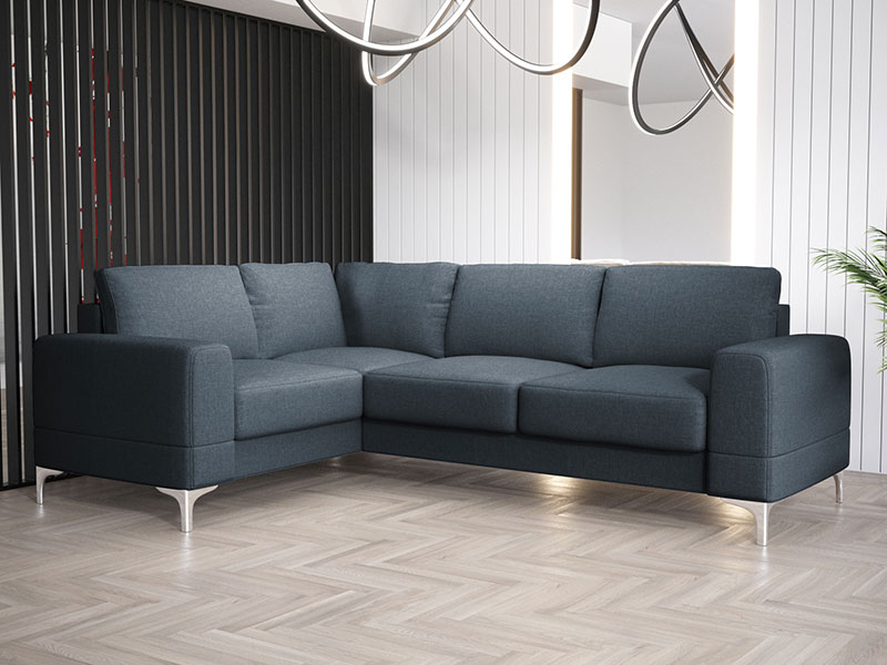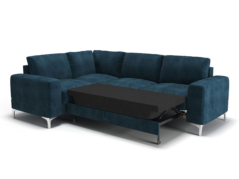 Ъглов диван с функция сън и ракла в лежанката. Диванът е с високи метални крака за по-лесен достъп за почистване под него. Площ за сън в разтегнато състояние 208/135 см. Възможност за поръчка в цвят по избор на клиента.