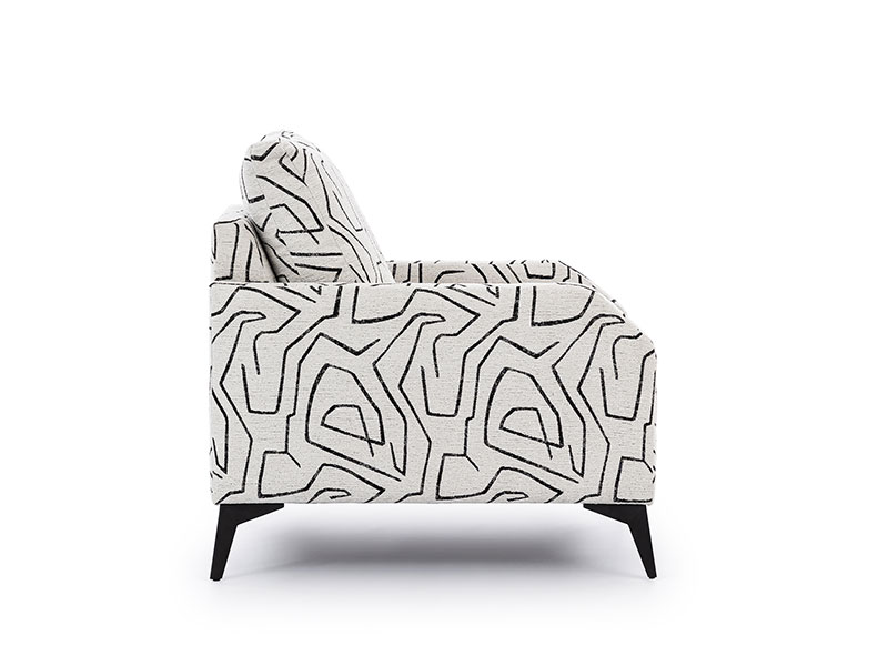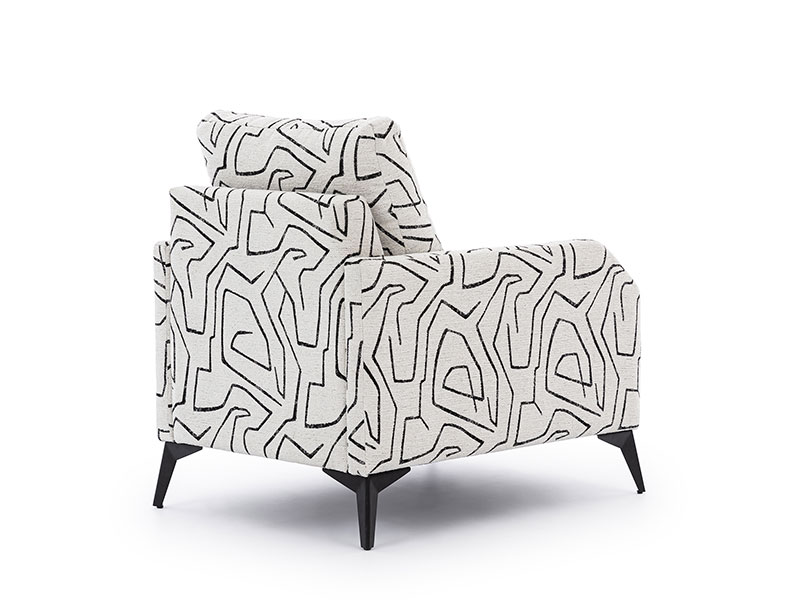 Кресло с модерен дизайн и компактни размери, дължащи се на изящните и тесни подлакътници. Изключително удобен фотьойл подходящ за малки помещения. Възможност за поръчка в дамаска по избор на клиента. Посочената цена не включва табуретката от снимките и е за плат в нулева категория.