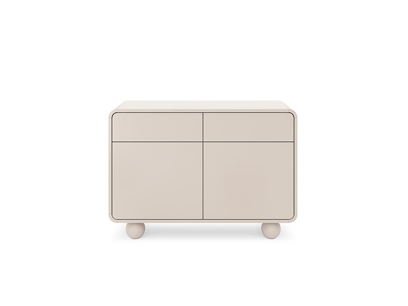 Малък скрин с две врати и две чекмеджета, част от модулна серията ALBION с модерен дизайн с меки и зоблени форми. Дръжките са заменени с пуш-бутони.