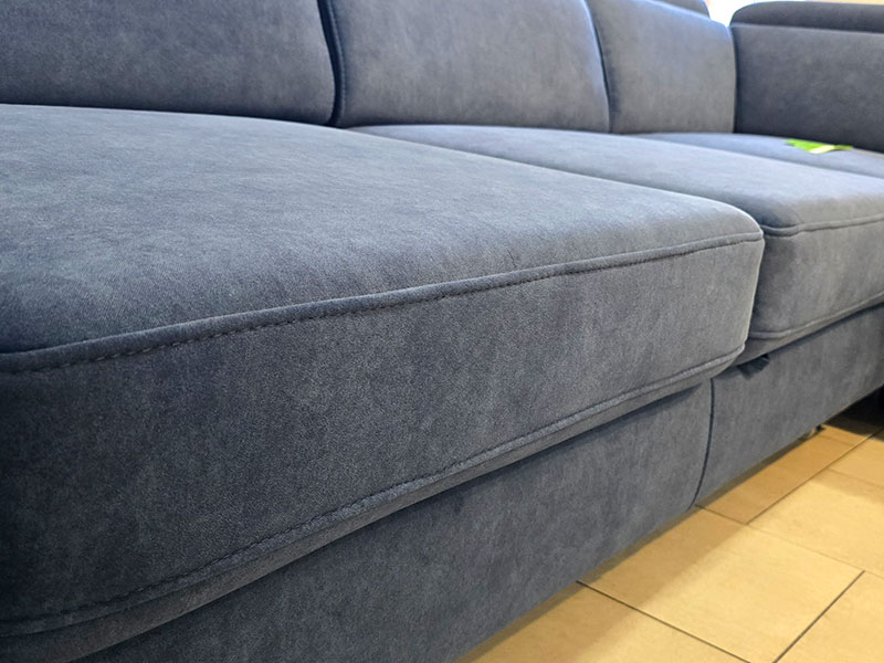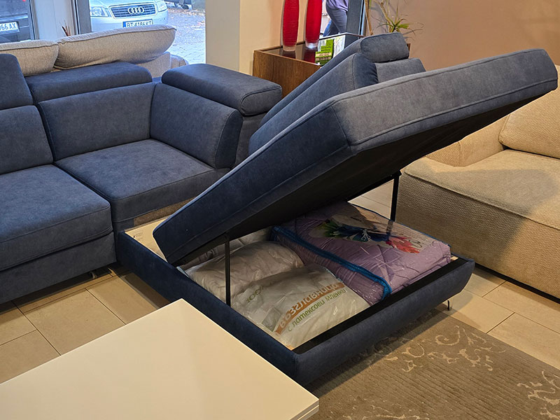 Намаление на голям ъглов диван с механизъм за сън и ракла модел GENOVA. Подглавниците са с регулируем наклом за по-голямо удобство. Диванът е мостра в магазина ни на ул. Генерал Стефан Тошев, 1-9 в гр. София. Площ за сън 200/120 см.