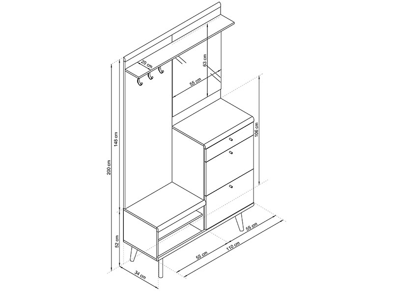 Компактно портманто с елегантен дизайн изработено в красива двуцветна комбинация от дървесен декор (дъб ривера) и бяло мат.